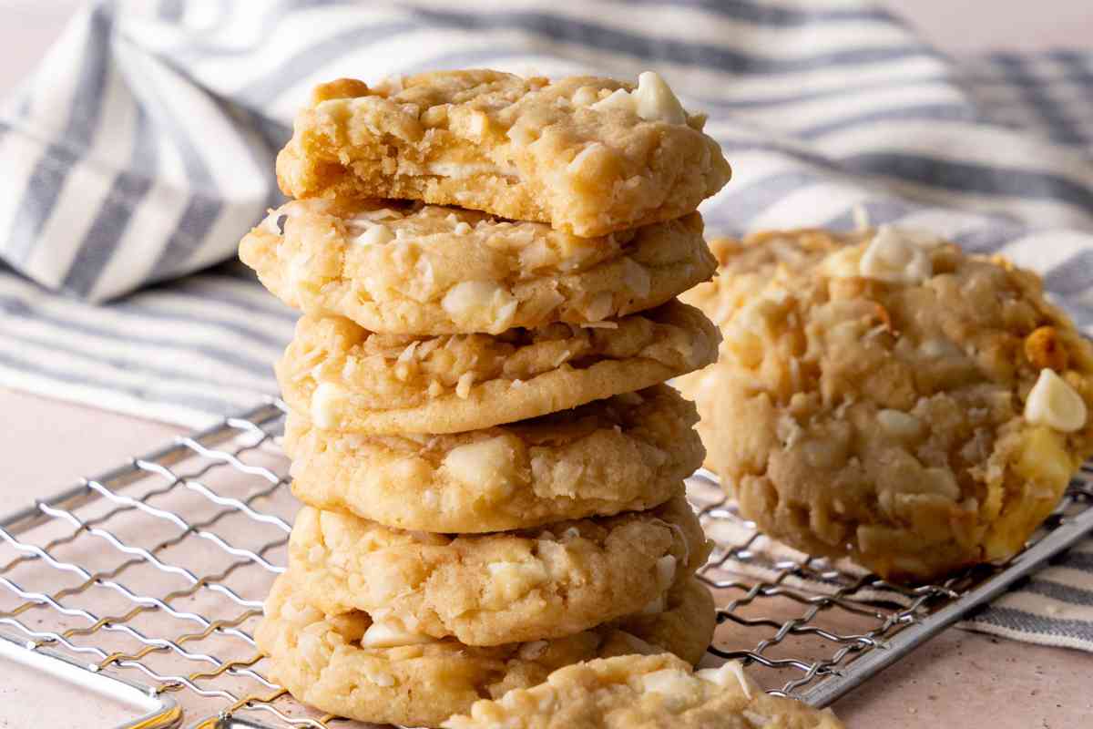 These white chocolate chip coconut cookies are soft, chewy, and full of sweet coconut flavor. With just a few ingredients, they bake to golden edges and have melty white chocolate chips in every bite.
