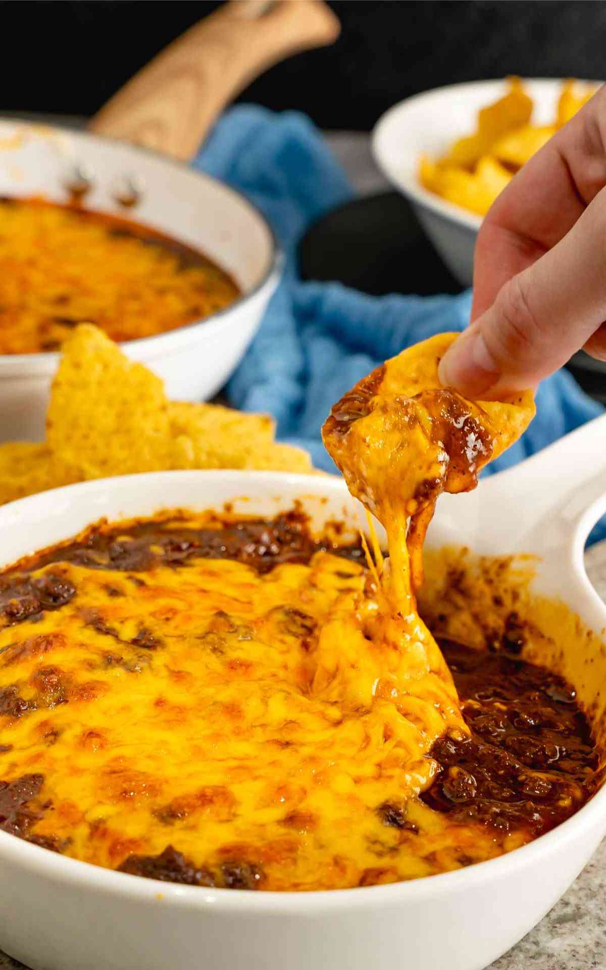 Making this chili dip is easy and it doesn't take long to put it together when using leftover chili or using canned chili.